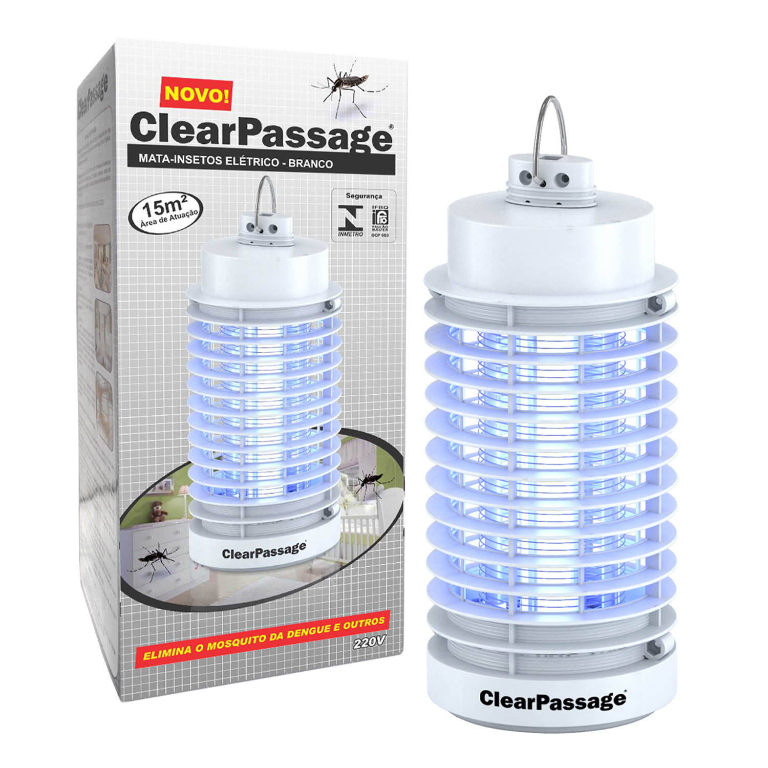 Apenas conecte o Mata-Insetos Elétrico ClearPassage na tomada e os insetos que estiverem próximos serão atraídos pela luz. Os insetos continuam voando até tocarem na grade elétrica do aparelho, provocando uma pequena descarga elétrica, eliminando o inseto.